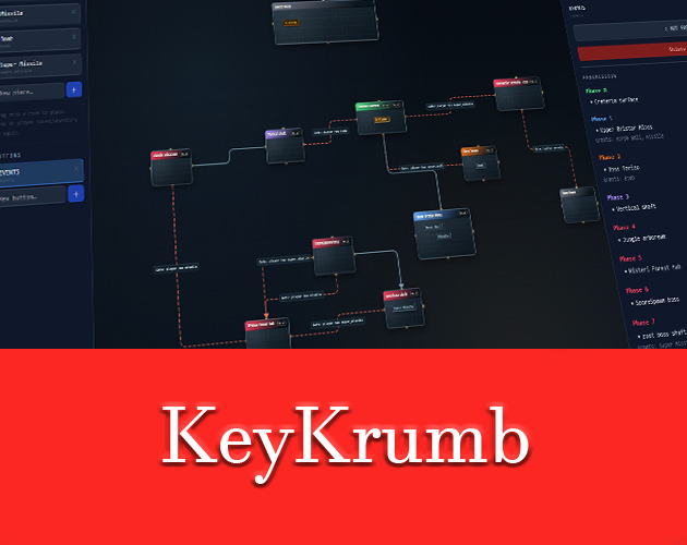 KeyKrumber is a tool that helps you design non-linear games like mazes with scattered keys. Or, more abstractly, metroidvanias, where abilities can act as keys for other regions. Or, even more abstractly, like knowledge that is required to explore other areas, like Outer Wilds. All of these games need to be designed with the same considerations, and I hope my tool makes that easy and convenient.